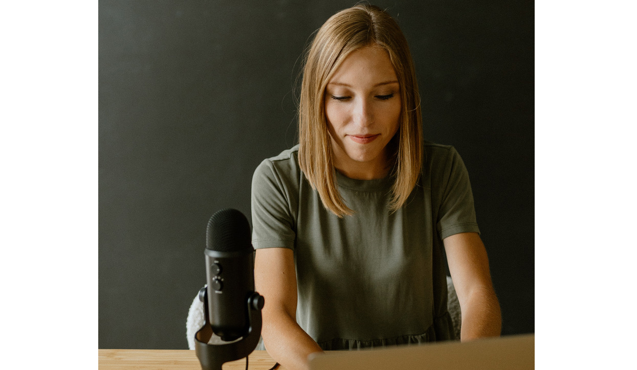 Murray sat in front of her podcast microphone. Photo by Aliyah Burton for Taylor Murray