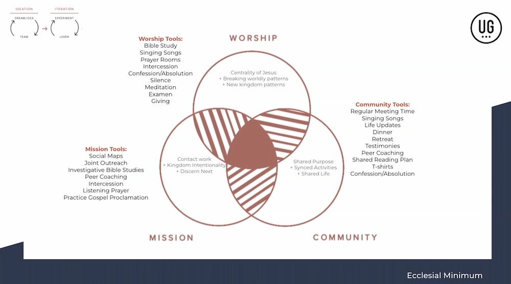 Phase two on starting a microchurch. Jeremy Stephens shared the three main minimums that all microchurches need: worship, mission and community with each having a set of tools to help provide a balance between the three. Photo courtesy of Underground Network