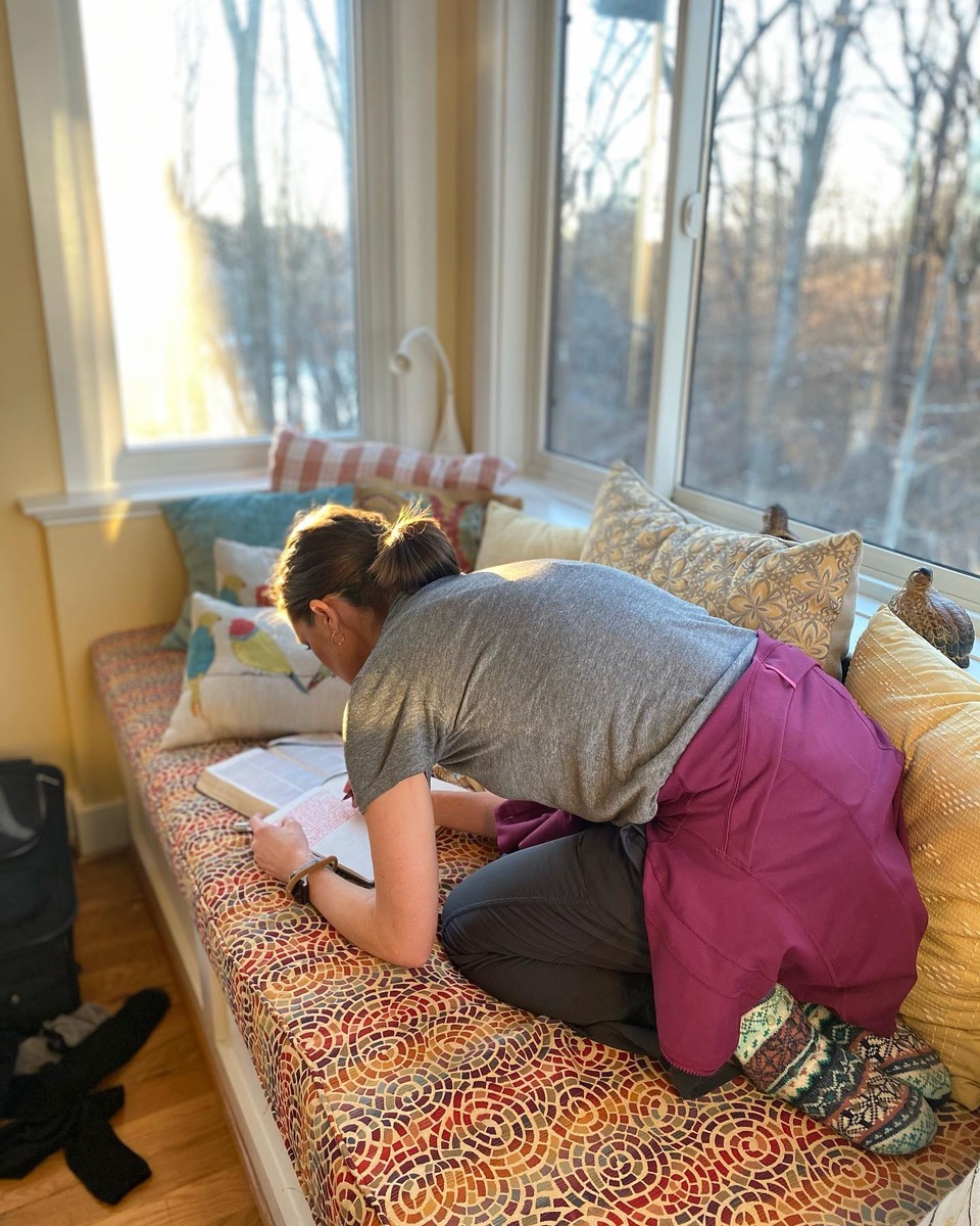 Karrie Thomas reads her Bible at a retreat in Virginia in 2019. Karrie and Aaron Thomas build sabbath retreats for themselves to practice what they encourage others to do, he said. Photo courtesy of Aaron Thomas